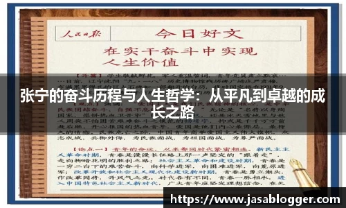 张宁的奋斗历程与人生哲学展现了一个从平凡走向卓越的成长之路。他以坚定的决心和不懈的努力,克服了无数困难,最终实现了自己的梦想。在他的故事中,我们不仅看到了个人成就的辉煌,更感受到了他对生活深刻的思考与哲理。文章将从四个方面详细探讨张宁的人生历程:勇于追梦、坚持不懈、乐于分享和自我反思。这些方面共同构...